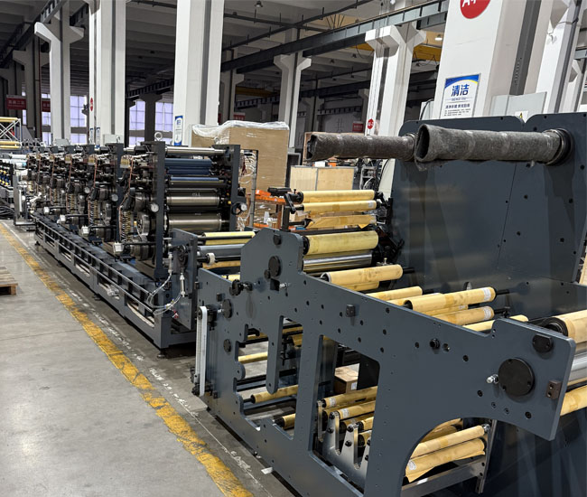 For label products requiring subsequent bag-making, intermittent flexo presses can perform die-cutting, waste stripping, and other processes inline, producing finished labels ready for automatic or manual application. When printing film-based labels, special attention must be paid to the stability of the tension control system to ensure the flatness of the printed material meets the requirements for high-speed bag-making.